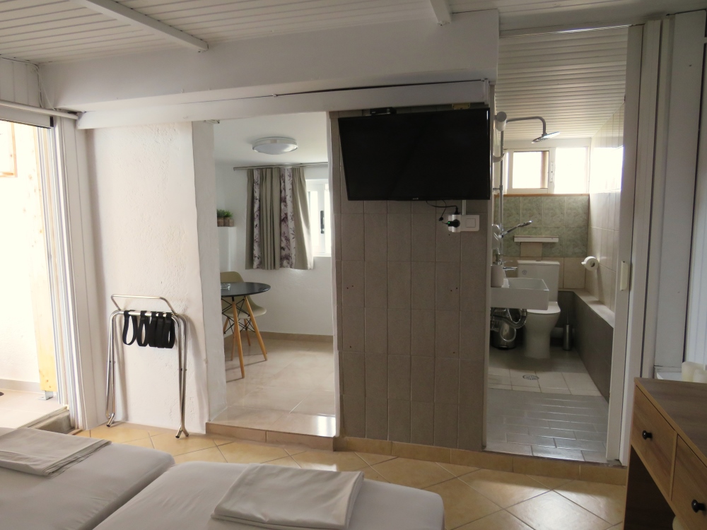 With super newly refurbished bathrooms with large shower stalls, also suitable for putting a stool in to sit and take a shower for those with mobility issues, Agrellis Studios is a great place to stay.